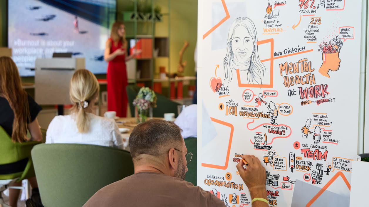 Alles, was die Arbeitswelt aktuell prägt, wird von uns diskutiert und mitgestaltet. Entweder Sie bringen ein eigenes Thema mit (kann direkt nach der Anmeldung eingereicht werden) oder Sie lassen sich von unseren Expertinnen und Speakern inspirieren. Wir definieren ein übergeordnetes Thema, zu dem es eine kurze Keynote geben wird, und starten dann in zwei offene Workshoprunden, deren Ergebnisse wir per Graphic Recording visuell dokumentieren und später zur Verfügung stellen.