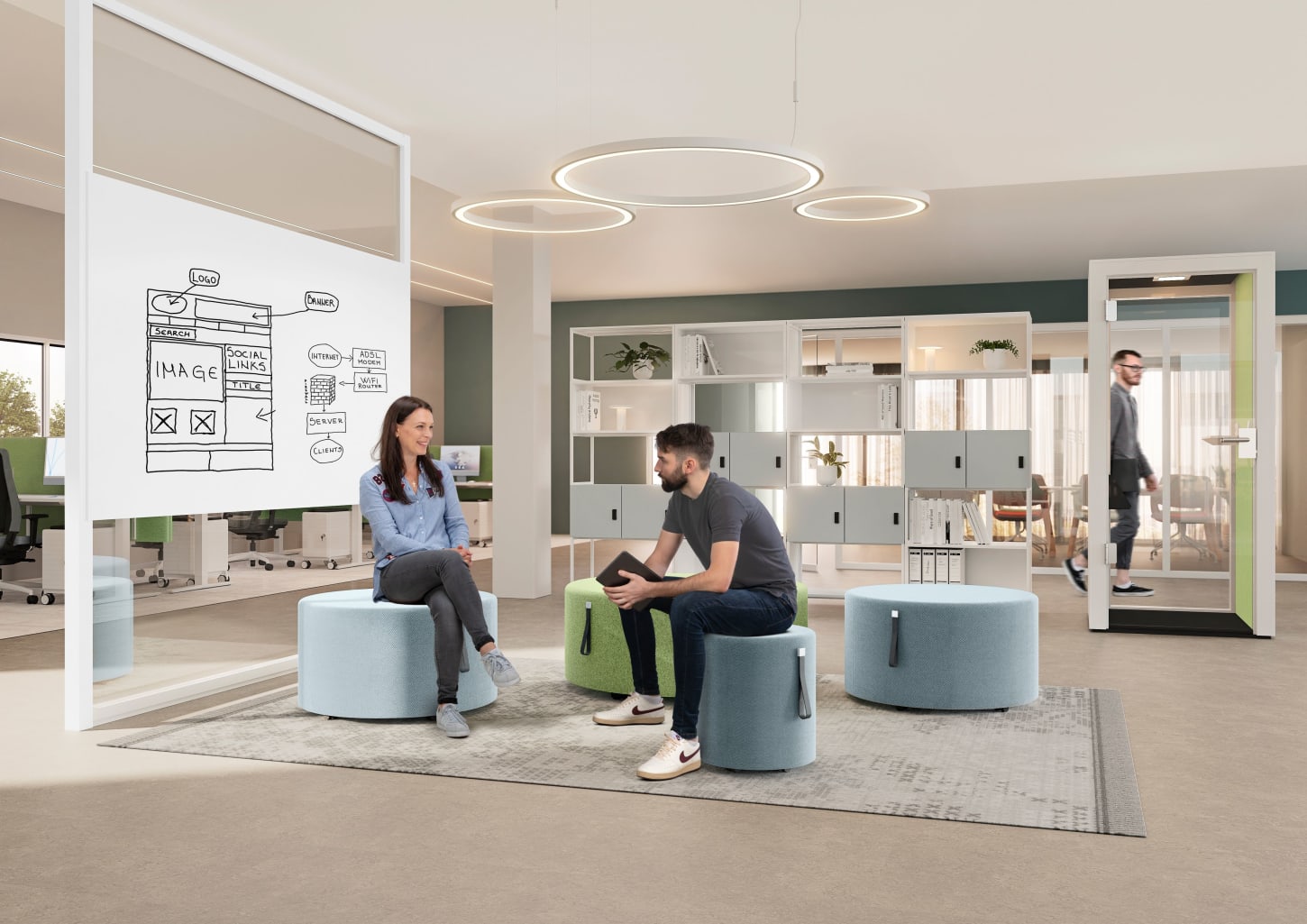 Wir unterstützen Sie bei der Einrichtung und Gestaltung Ihrer Arbeitswelt – mit Möblierungskonzepten, die sich an flexiblen Arbeitsstrukturen orientieren und sich individuell an Ihre Situation und Anforderungen anpassen.
